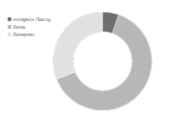 10-12 Reisetage pro Monat, meistens in Touren durch 3-4 Nationen für Konferenzen, Führungsmeetings und Organisationsbesprechungen, Kosten für 120 Arbeitsstunden: 7.200€